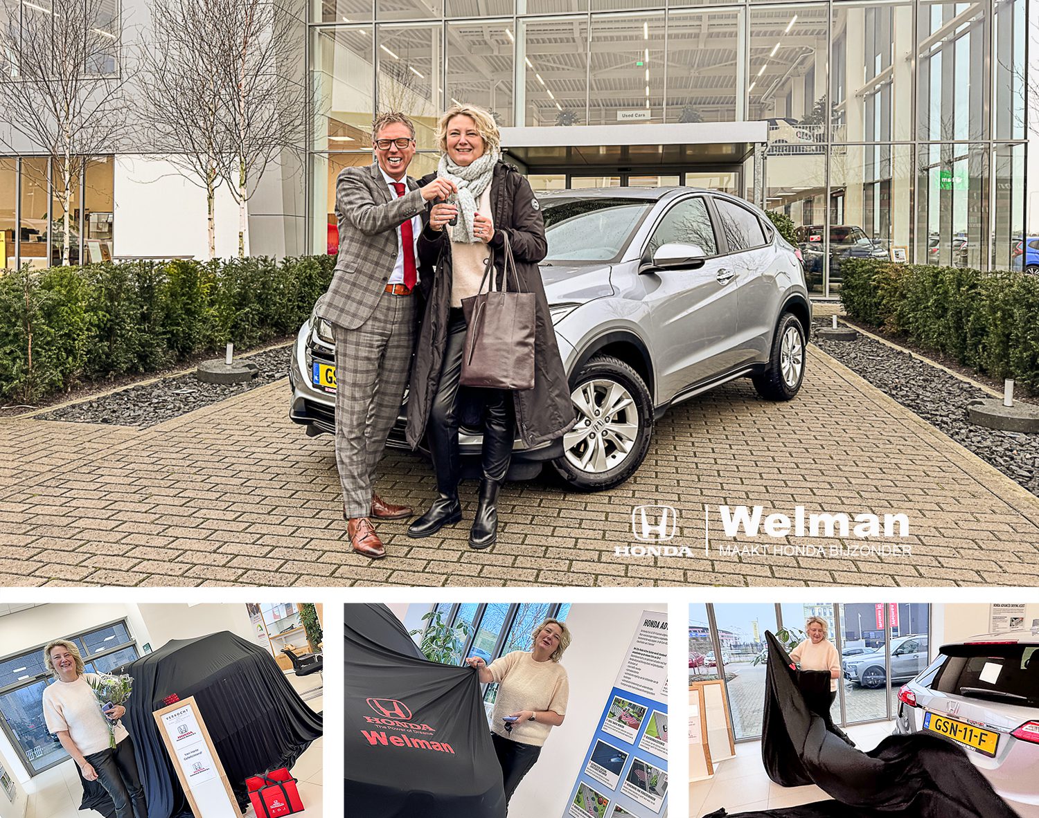 ✨ Annemiek was toe aan een nieuwe auto en ging samen met Tim op zoek naar dé perfecte match. Een paar showrooms langs, kwam het verlossende moment: “Tim! Laatst was ik bij Honda Welman, daar moeten we ook nog even kijken!” En daar stond-ie… sprankelend als nieuw, met slechts 7.000 kilometer op de teller: een prachtige zilverkleurige HR-V Elegance automaat. De Click was direct daar en de gezelligheid ook…