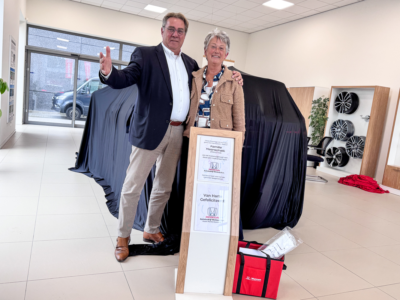 Gelukkig was het advies snel gegeven door ons gegeven: “Ad, je moet gewoon de meest complete nemen — de CR-V Advance Tech!” En zo geschiedde. De kleur was snel gekozen, en samen met Rita werd de officiële levering gevierd — altijd weer een mooi moment samen! 🎊