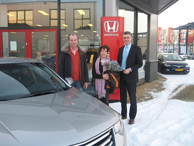 de familie Boon vroeg zich af of het na 13 jaar en 343.000 kilometer al tijd werd om de zeer betrouwbare Honda Accord Jewel in te ruilen voor een nieuwe Accord. Na de nodige visites en bemoedigende woorden werd uiteindelijk de knoop doorgehakt om toch voor een nieuwe auto te gaan. Op de foto ziet u het uiteindelijke resultaat: een buran zilveren Accord Automaat met een zwart lederen interieur. In een woord: Prachtig ! Het team van Welman in Zwaag wenst u veel en vooral betrouwbare nieuwe kilometers toe