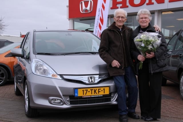 Tijdens de 2de onderhoudsbeurt kreeg dhr Burger een Honda Jazz Hybride mee als vervangauto. Hierna was dhr burger toch wel benieuwd wat erbij moest voor een Jazz in een Hybride uitvoering. Samen gerekend en een kopje koffie en de deal was vrij snel rond. Zie op de foto het resultaat veel rijplezier gewenst in ook deze prachtige Honda!