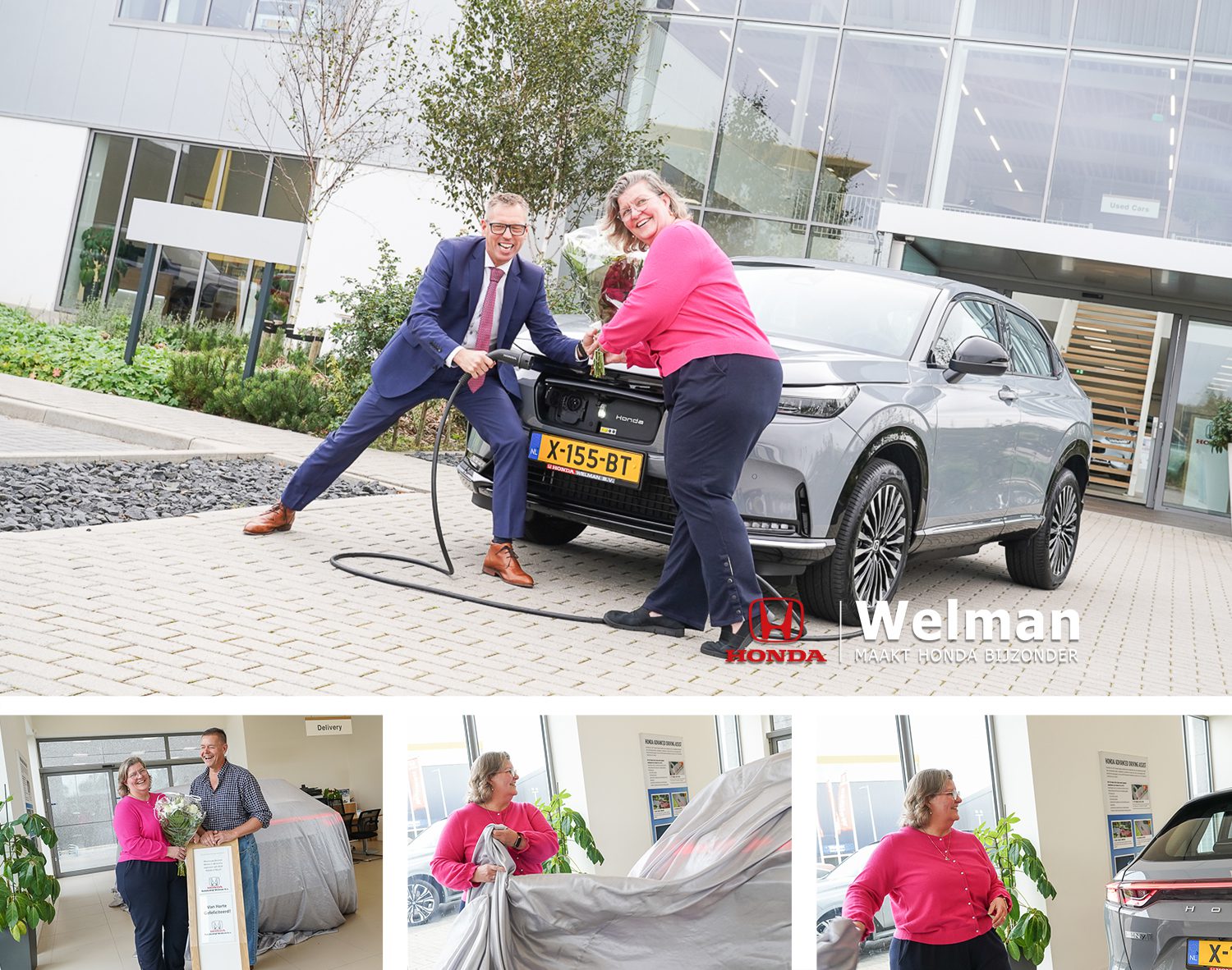 22 jaar terug stonden we bij de toen net nieuw uitgekomen Jazz over de isofix te kletsen; de kinderen moesten toen nog geboren worden en nu ruim een aantal Honda’s verder staan we over de nieuwste elektrische Honda e:Ny1 te babbelen en de kinderen discussiëren inmiddels mee over de aanschaf en rijden uiteraard zelf ook een testrondje. Als eerste kwam Desiree bij ons om te vragen wanneer die elektrische e:Ny1 komt? Dan toch nog even bij dat Zweedse automerk kijken, maar daar miste de klik met zowel verkoop als garage. Zoals je leest, gaat de tijd snel en zo kwam langzamerhand toch die langverwachte e:Ny1 voor Desiree op ons pad. De aflevering was weer één gezellig feest. Desiree en Pieter, hartelijk dank voor onze jarenlange relatie – en nog veel meer plezier met jullie nieuwe en allereerste geleverde e:Ny1 in Nederland toegewenst… Namens het gehele Welman team…