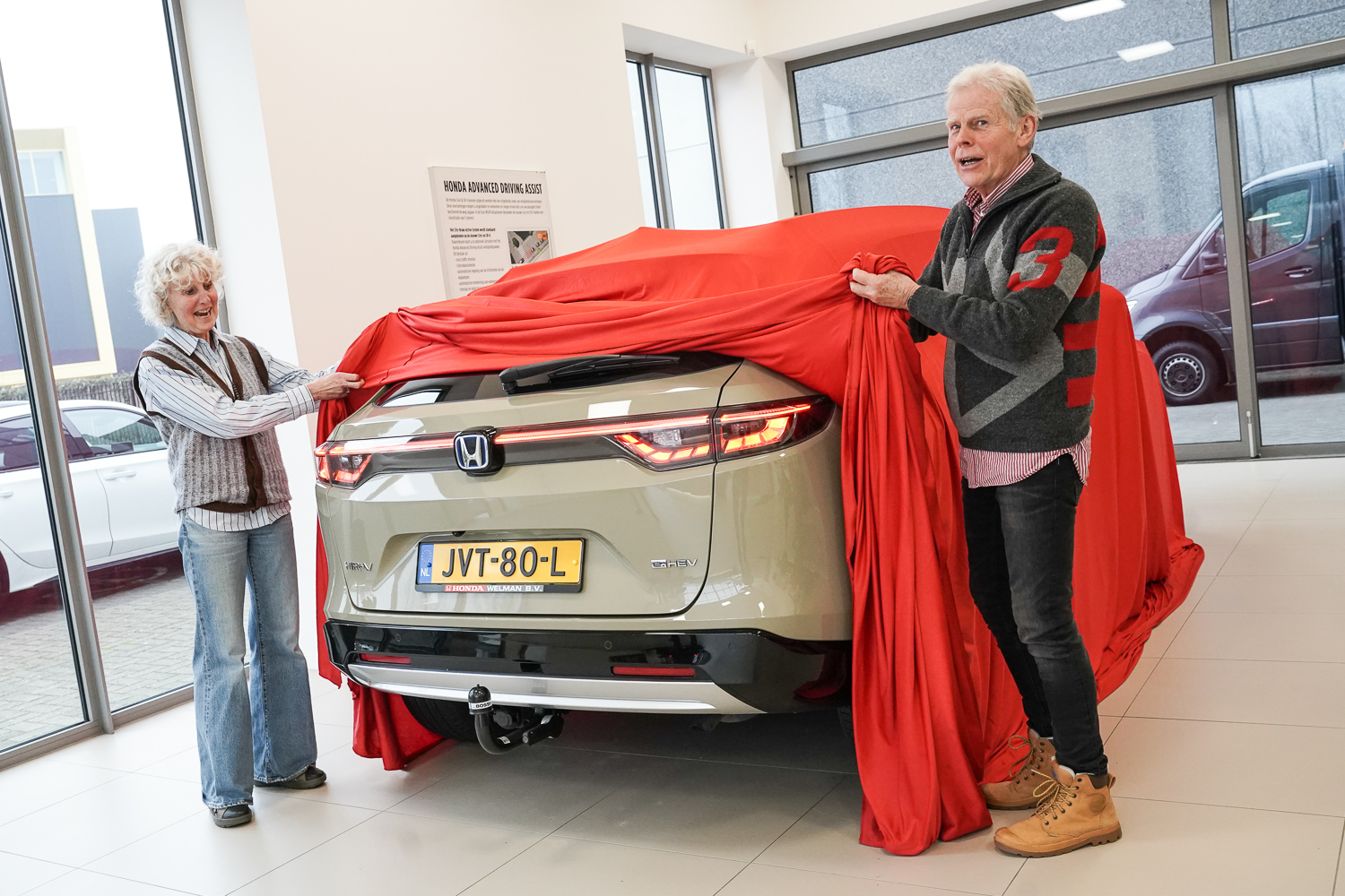 Toevallig hadden wij net een prachtige Honda HR-V Advance Style binnengekregen, uitgevoerd in de bijzondere kleur Sand Khaki. Die kleur wist Gerda meteen te overtuigen. Uiteraard moest er ook een proefrit worden gemaakt, want hoe rijdt zo’n Honda HR-V eigenlijk?