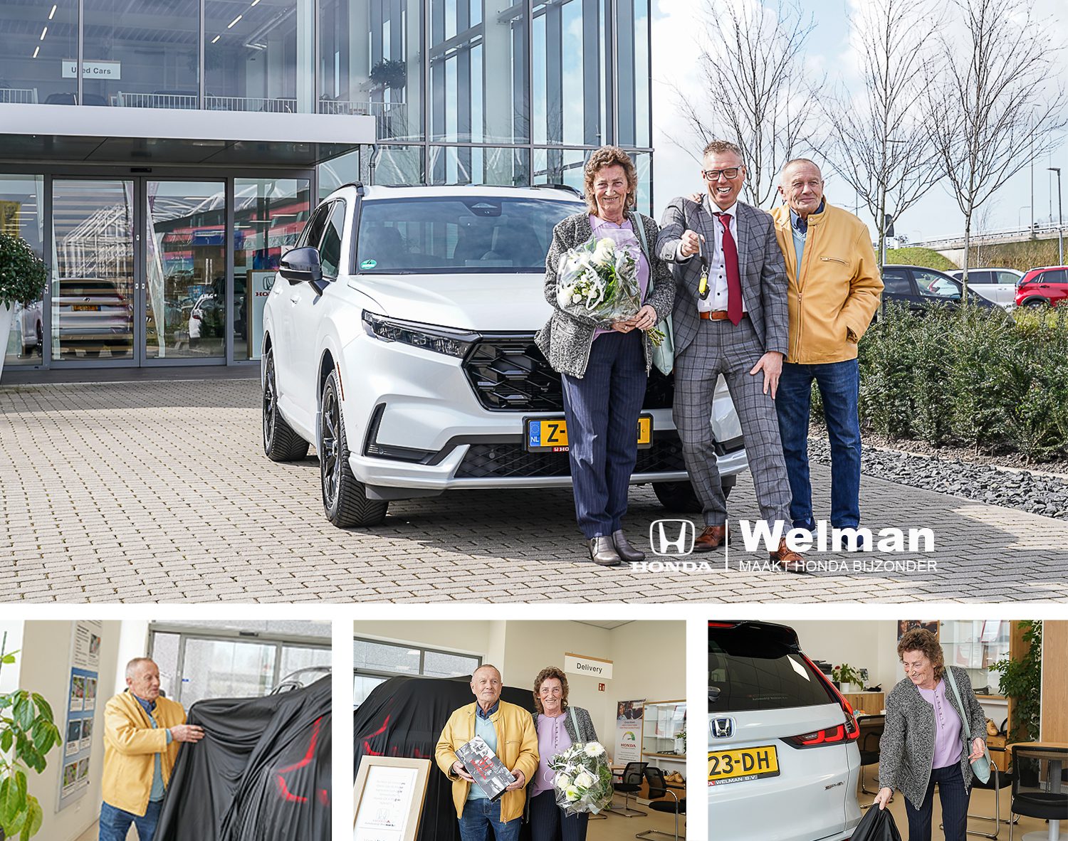 Weer was het een feestelijke dag om opnieuw jullie te mogen uitzwaaien met jullie nieuwe Honda CR-V! Jullie zijn inmiddels ware Honda-liefhebbers en vaste klanten aan ons bedrijf!!! Het begon ooit en wel in de jaren ’90! Toen van de legendarische CR-X naar de klassieke rode Honda Prelude, jullie hebben vanaf toen echt een reis gemaakt door alle Honda-CR-V modellen. Hoeveel? We zijn de tel even kwijt geraakt. En nu, met jullie allernieuwste CR-V PHEV, Advance Tech zetten jullie de traditie voort, met nog meer innovatie, rijkwaliteit en stijling. Het is geweldig om te zien hoe jullie toch opnieuw weer zo blij zijn met het nieuwe, terwijl de nieuwe CR-V een naadloos onderdeel van jullie leven is. Jullie kennen de opties als geen ander, en samen verkennen jullie de nieuwe functies en snufjes. De laadstekker en de Honda My Honda+ App zijn welkome toevoegingen met deze nieuwe CR-V. We zijn ervan overtuigd dat jullie wederom vele kilometers vol rijplezier zullen beleven, en we staan altijd klaar om jullie te ondersteunen bij elke stap van wat nog uitgelegd moet worden. Namens ons hele team Welman wensen we jullie opnieuw weer veel plezier toe met jullie nieuwe CR-V PHEV Advance Tech.