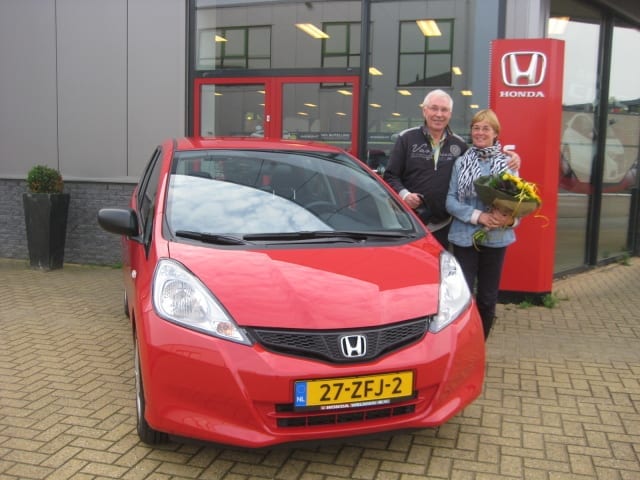 Meneer Boomsma heeft twee CR-V?s achter elkaar gehad en aangezien mevrouw Boomsma na de eerste CR-V al liever een wat compactere auto wilde rijden, zijn ze tot een heel goed compromis gekomen. Martin besloot om meneer Boomsma met een Jazz naar huis te laten rijden. Mevrouw Boomsma heeft daarmee toen een ritje gemaakt en voelde zich gelijk helemaal thuis, Een paar dagen later konden ze de auto al ophalen. Super toch ! Een hartstikke nieuwe Jazz in milano red.