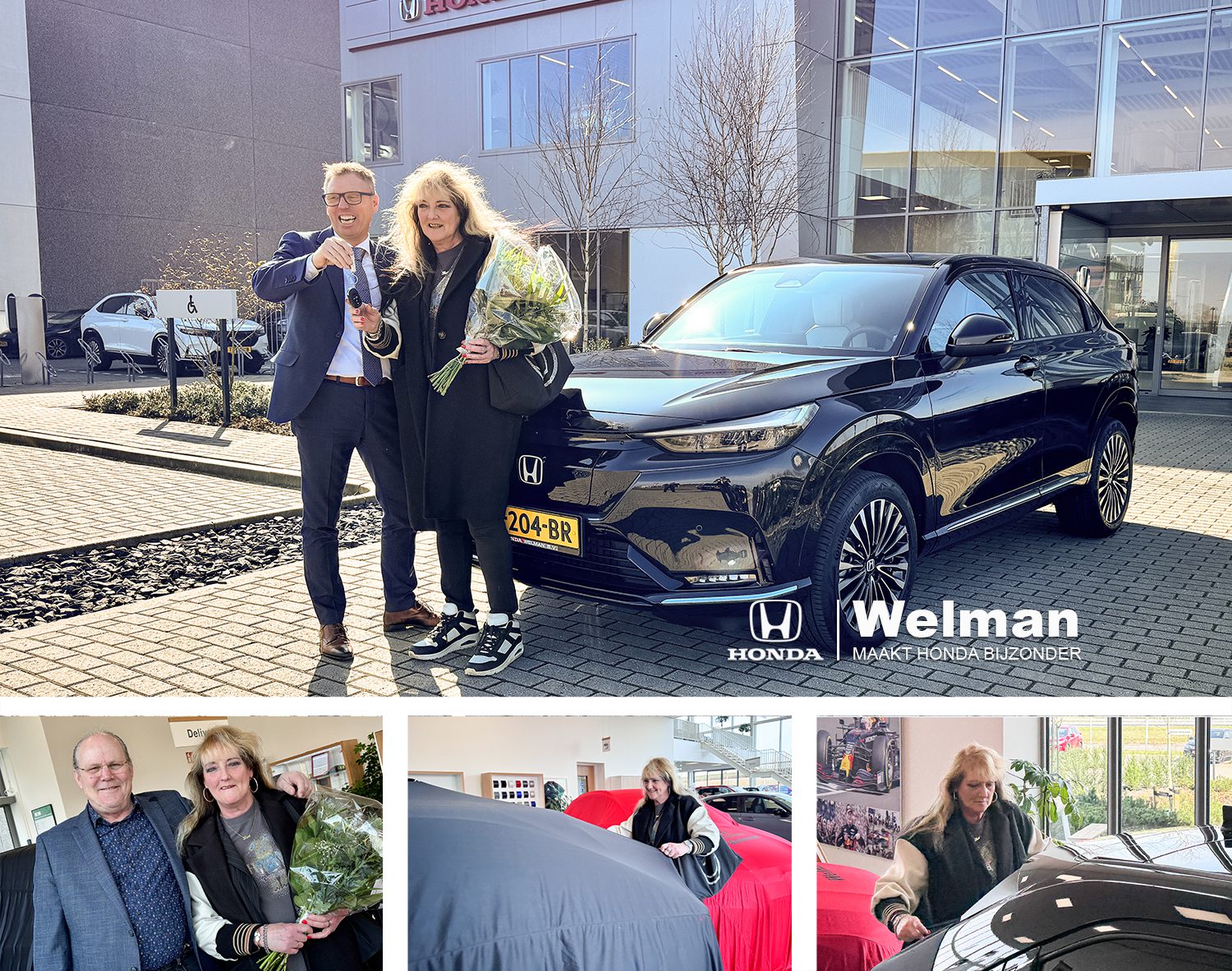 Met stralende gezichten verwelkomt de familie Vet afgelopen zaterdag hun 3e nieuwste aanwinst: in de vorm van de nieuwste e:Ny1, een 100% elektrische wondermobiel van Honda! Het begon allemaal met Peter, die vol trots de sleutels van zijn fonkelnieuwe CR-V in ontvangst nam. Zoonlief Franklin kon zijn ogen niet afhouden van die betoverende Civic, waardoor het Honda-virus al snel de hele familie besmette. Voor Ria was er dus geen ontkomen meer aan; ook haar oude elektrische auto van het niet Honda merk moest plaatsmaken voor de onweerstaanbare Honda-liefde van de mannen. En daar staat ‘ie dan, in volle glorie: de derde Honda, de e:Ny1, voor Ria in een prachtige zwarte kleur met een prachtig licht lederen interieur. Een perfecte toevoeging aan het groeiende Honda-familiepark bij Ve-Ca.