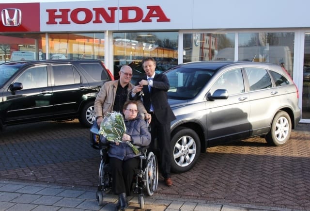 Echte Honda liefhebbers zijn de heer en mevrouw Dubbelaar. Na gereden te hebben met een zeer luxe 2,4i Accord Tourer, moest er een hoger en gemakkelijke auto komen voor een goede instap. Door aanpassing voldoet de CR-V met lift en verdraaibare stoel. We moesten er allemaal even op wachten, de foto bewijst het resultaat
