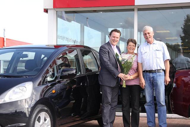Word het niet eens tijd voor een nieuwe? En inderdaad, waarom niet. Na over de prijs uit te zijn gekomen rijdt de familie Scholtes weer helemaal nieuw. Zonder krasjes, deukjes en andere plekjes?.. alhoewel zonder plekjes: de heer Scholtes wilde een nieuwe uitgang binnen ons bedrijf proberen, en liep tegen het raam aan waardoor er een plekje op zijn neus zat. Tegen het raam kwam, door eigen zeggen, door de auto die te dicht tegen de balie aan stond. Maar achter de balie zat onze nieuwe collega Tessa?..zal die het blikveld van de heer Scholtes hebben afgeleid?