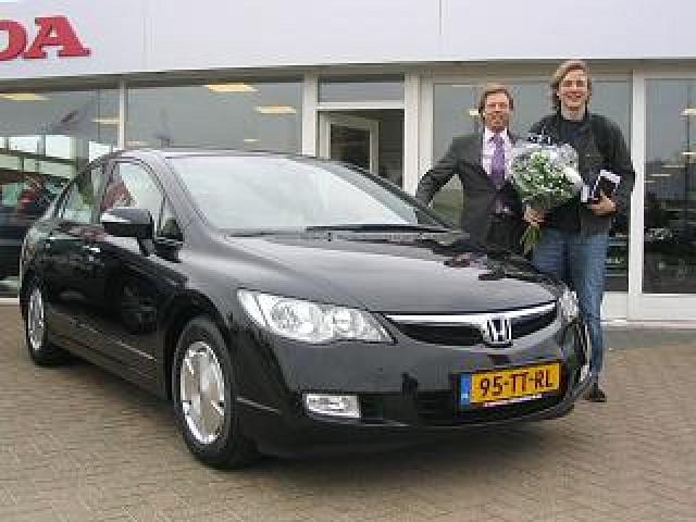 Hans, rijdt al enige jaren met een Honda Shuttle. Nu naast zijn eigen Honda en via zijn werkgever is Hans onlangs bij ons weggereden in een Honda Civic Hybride, natuurlijk in de kleur zwart. Van binnen is de Hybride wel uitgevoerd met heel mooi beige leer, inclusief een paar luxe´s meer.