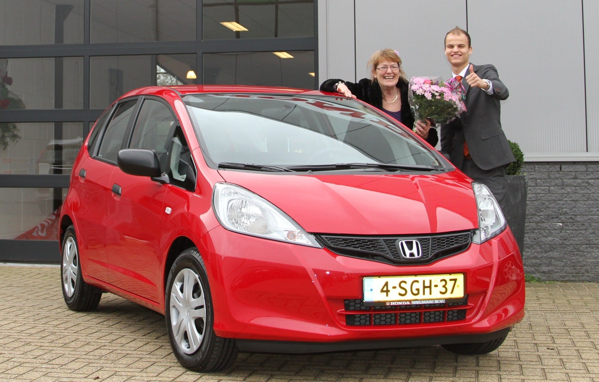 Soms moet je een beetje geluk hebben, zal mevrouw Ypma gedacht hebben. Helemaal uit Friesland, Beetsterzwaag wel te verstaan, viel het oog op een Honda Jazz. Nadat Monique alle tests had gelezen over de Honda Jazz en er zelf ook mee gereden had, was alleen de vraag: “Welke kleur?” We hadden hem nog in één kleur staan en laat dat nu net die stoere en prachtige kleur zijn die Monique wilde: Milano Red! Het is alleen nog wachten op de lichtmetalen velgen en dan is het plaatje compleet. Monique, namens ons hele team, heel veel rijplezier met je nieuwe racemonster!