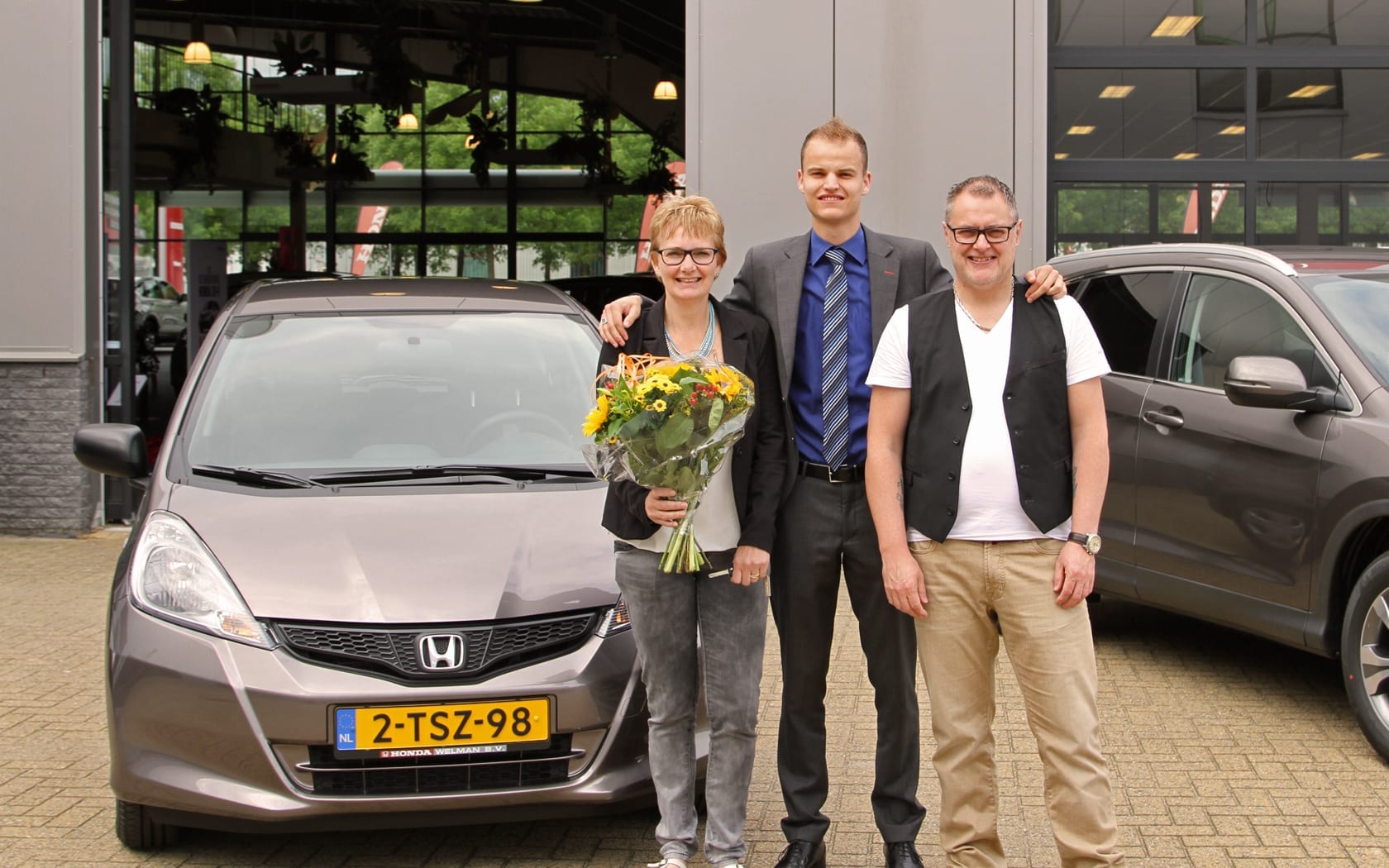 Trea rijdt al een aantal jaar in een Honda Jazz en die bevalt zo goed dat er op een gegeven moment interesse begon te komen voor het nieuwe model. Bij een bezoek nam ze al regelmatig een kijkje in de showroom en toen bekend was dat er een mooie actie liep, mochten we toch eens gaan praten over het financiële plaatje. In overleg met Jan, haar man, werd er in een korte tijd besloten om toch voor een nieuwe te gaan. De kleur die is gekozen, is echt fantastisch: Urban Titanium. Het aantal Honda’s van de familie De Vries was eerder deze maand al uitgebreid en wordt dus nu ververst. Wij wensen Trea heel veel rijplezier met haar nieuwe auto!