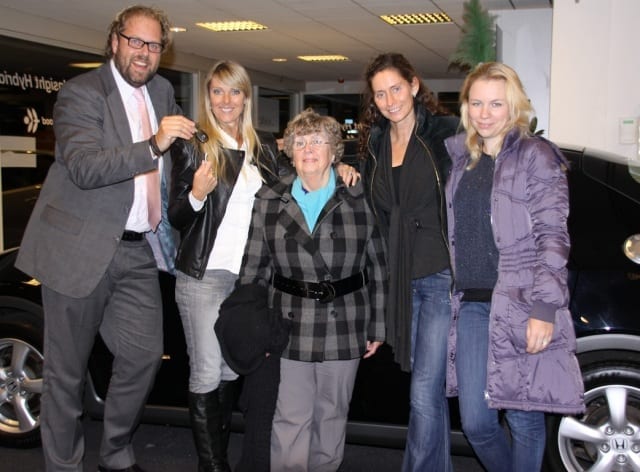 “De musical ster” Joke de Kruijf bracht recent een bezoek aan ons bedrijf. Dit keer niet om een mooie muziekstuk ten gehoren te brengen. Juist voor aankoop van een fantastisch mooie sportieve Honda Civic. Wij zijn trots op de levering aan Joke! Een groot feest tijdens het afhalen, met moeder en natuurlijk haar vriendinnen Heidi van Deudekom en zo ook Pia Douwes allemaal stralend op de foto en bij de nieuwe Civic automaat. En Oh,ja de baard van Erwin is op deze foto voor een tijdje de laatste…
