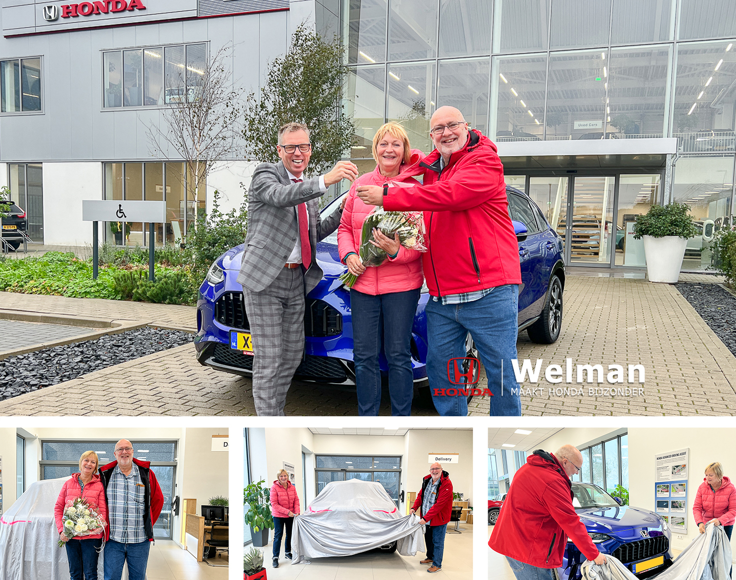 Bij toeval kwam de familie Uijl op onze locatie aan de Parelweg voorbij, het was niet direct de bedoeling om binnen te lopen bij Honda en toch viel het allernieuwste ZR-V model van Honda direct bij de familie Uijl in het oog. Leder interieur, elektrische verstelbare stoelen en een Panoramadak is een must en dat is minimaal wat de ZR-V naast alle andere mooie opties als standaard heeft. Een proefrit werd direct gemaakt en het smaakte naar meer, zo kwamen we serieus ingesprek voor een nieuwe volgende auto wat dan een Honda ZR-V heet. Levertijd was niet gewenst en de blauwe kleur was in trek, zo konden we na montage van een paar degelijke all weather banden en een inklapbare trekhaak deze pracht SUV aan deze familie uit Heerhugowaard afleveren. Onze bloemist Ron de Vries, die overigens de naaste buurtjes bleek, heeft nu ook eens uitkijk op een geweldig mooie auto!!! Samen genieten van jullie nieuwe auto en natuurlijk veel rij -plezier toegewenst.