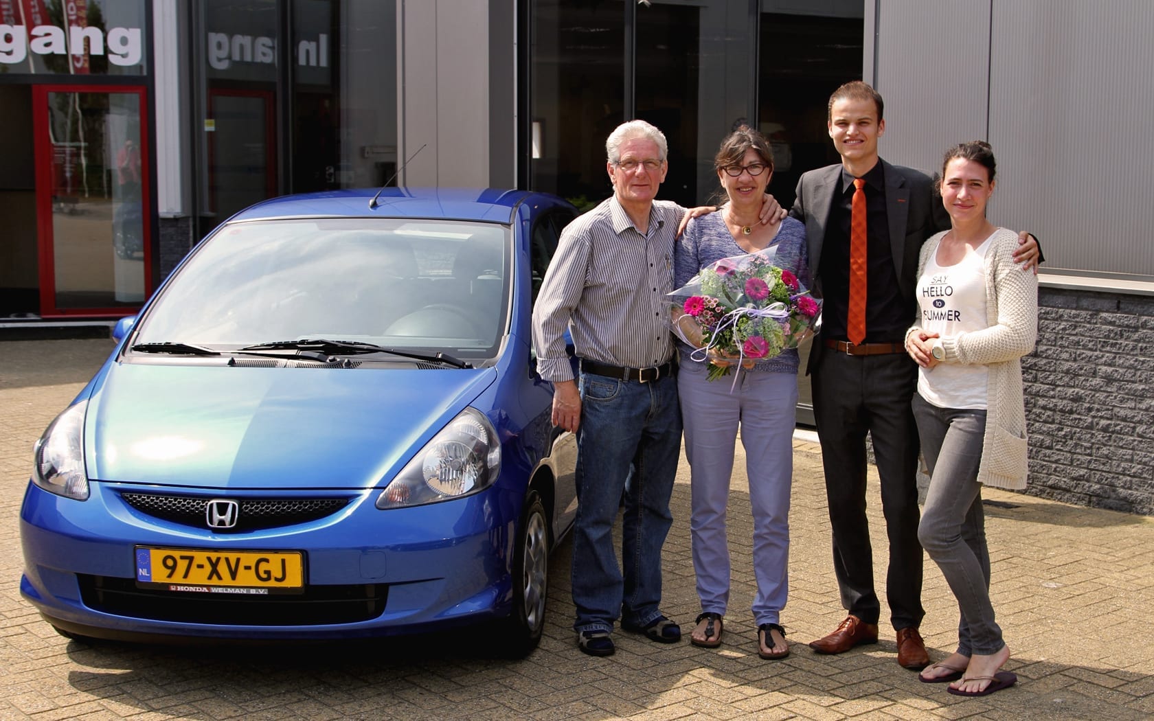 Al ruim 9 jaar reed mevrouw de Ruiter een Daewoo, een merk dat inmiddels niet meer bestaat. Haar kleinzoon Rico was er eigenlijk té gek op om de auto te laten gaan, maar het moment moest er nu toch echt van komen. Met de goede hulp en adviezen van de heer Huisman, een erg goede klant van ons, werd mevrouw de Ruiter aangespoord om eens te gaan kijken naar een Honda Jazz. Eenmaal in onze showroom gekomen, was ze op slag verliefd op het model en de kleur: Vivid Blue Pearl. Bij het ophalen van de nieuwe aanwinst was uiteraard de heer Huisman aanwezig en ook dochter Karin kwam kijken wat voor mooie auto haar moeder nu gaat rijden. Wij wensen mevrouw de Ruiter heel veel rijplezier met haar nieuwe auto!