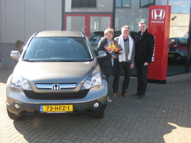 De familie Ravensbergen reed “toevallig” langs onze vestiging in Zwaag en daar stond de auto waar zij eigenlijk al een tijdje naar op zoek waren. Na vele jaren zeer trouwe dienst, was hun Accord Automaat van 1995 toch wel aan vervanging toe. Wat hoger zitten, een geschikte kleur, het moet allemaal in het plaatje passen. Staat er in Zwaag toch precies de CR-V die zij zoeken ! Auomaat, leer, hoge zit, goede kilometerstand, prijs ook niet verkeerd. Kortom; het gesprek werd ook niet lang en 10 dagen later rijden ze met hun nieuwe aanwinst naar huis. Veel plezier !