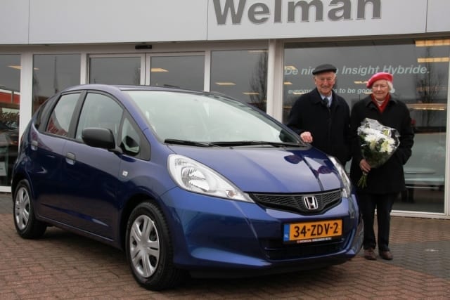 De heer en mevrouw Buis al heel wat jaren Honda rijders. Dit keer werd er ook niet getwijfeld wat de volgende auto zou worden. Er werd gekeken naar een auto met toch lekker wat ruimte en een hogere instap. het vizier kwam via internet terecht op onze mooie Honda Jazz. Na een bezoek met een aantal zonen van de heer en mevrouw Buis werd de keuze bevestigd. Ik wil u dan ook weer samen veel plezierige kilomters toe wensen in deze prachtige Honda Jazz.