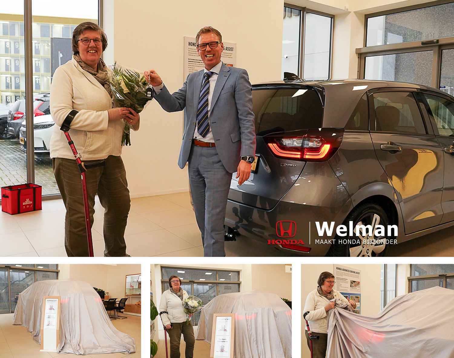 Inmiddels mocht er wel iets nieuws komen, want de huidige Peugeot was inmiddels ruim 20 jaar oud geworden. Deze door vaders ooit nieuw aangekocht heeft dan veel herinneringen en deed het voor een Franse bolide eigenlijk nog prima. Toch was het nu wel het juiste moment om over te stappen naar een nieuwe auto. Het moest een goed product zijn en dan kom je al snel bij de Honda Jazz uit. De overstap dan naar de allerluxe Jazz is dan wel een grote overstap en zeker gewenst. Samen met een goede vriendin werd de aankoop gedaan en het ophaalmoment met elkaar gedeeld. Zo sta je er niet alléén voor bij zoveel uitleg en zo kwamen we goed en gezellig door de alle knopjes heen. Wij wensen mevrouw Pijl enorm veel rij -plezier toe met haar nieuwe luxe Honda Jazz Executive