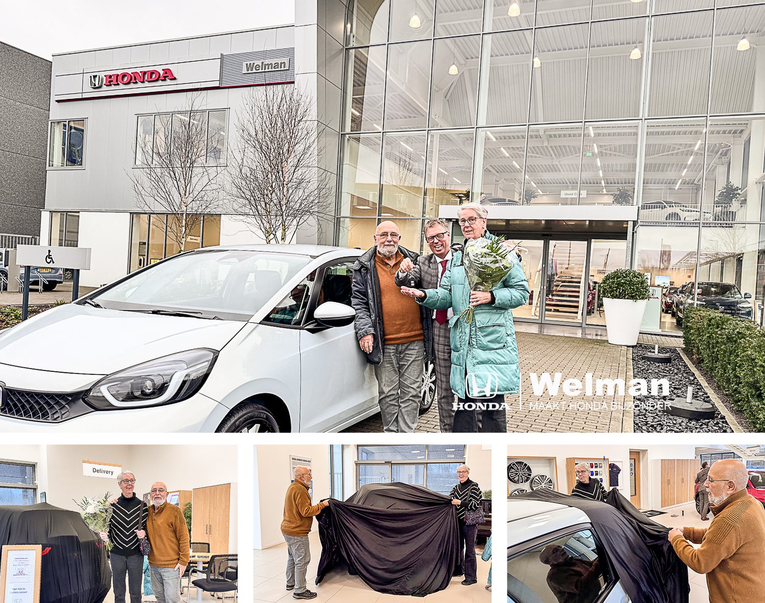 En daar “is-ie” dan: De splinternieuwe Honda Jazz in de prachtige Sunlight Silvere kleur voor de familie Bloemer! Na een uitgebreide uitleg van alle handige knopjes, mocht de familie Bloemer hun nieuwste trots in ontvangst nemen. Een heerlijk en feestelijk moment – deze Jazz is klaar voor vele jaren Honda rij -plezier.