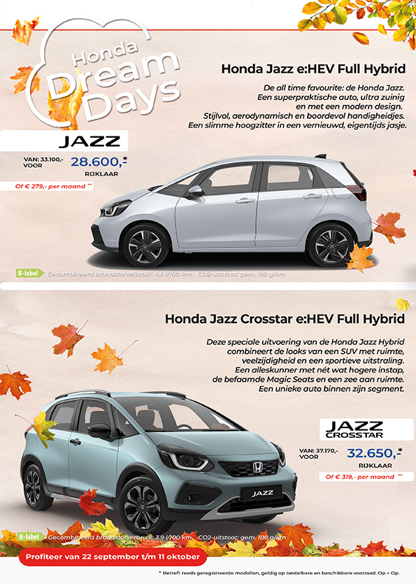 Deze herfst profiteert u van extra scherpe prijzen en mooie acties op verschillende modellen.