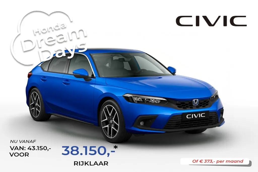 Het boegbeeld van Honda: de Honda Civic. Al sinds begin jaren ’70 een publiekslieveling die dankzij de uitgesproken stijl nooit uit de mode raakt. De nieuwe generatie Civic is weer een lust voor het oog met strakke lijnen en dynamische rondingen. Of u nu veel in de stad rijdt of lange ritten maakt, de nieuwe Civic maakt van elke kilometer een feestje.