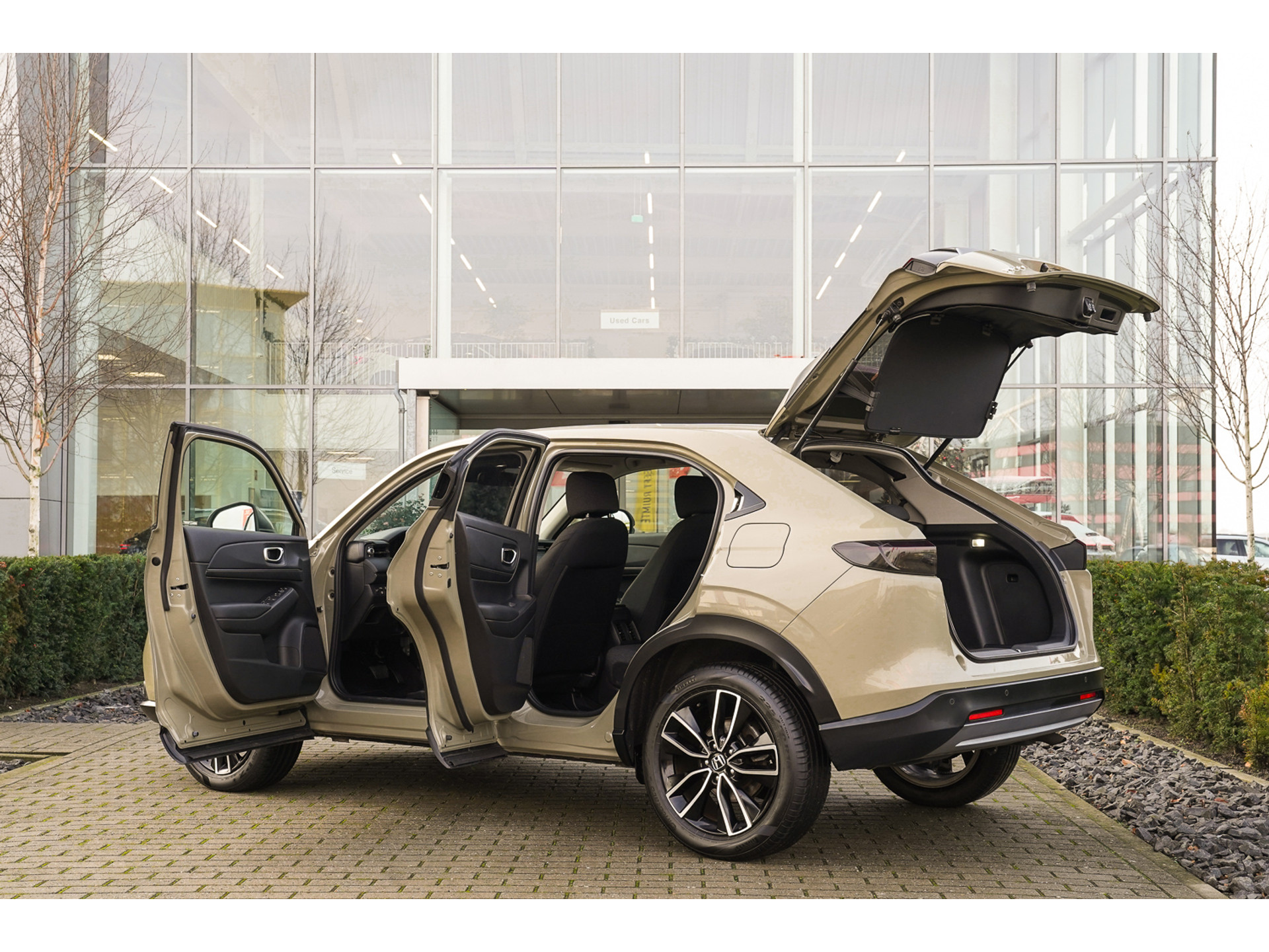 Prachtige HR-V 1.5i ELEGANCE – e:HEV Hybrid Automaat. inclusief; Zwarte Grill, Honda Connect, Garmin Navigatie, Parkeersensoren voor en achter, Adaptieve Cruise control, Rijstrookassistentie, Bluetooth carkit, Climate control, Achteruitrijcamera met parkeerhulp, Privacy Glass, LED verlichting, Verkeersbordenherkenning, Stoelverwarming, e-call, Hill Start Assist, Road Departure Mitigation, 9” Touchscreen, Magic Seats, Digital Audio Broadcast (DAB), Smart entry, Achteruitrijcamera, Android auto/Apple Carplay, 18” Lichtmetalen velgen, Hifi installatie, Automatische ruitenwissers, Automatische verlichting met High Beam Support, Automatisch sturen, Low Speed Following en Honda Sensing. Deze HR-V kent een absoluut schadevrije historie en is 100% Honda dealer onderhouden! Bent u de nieuwe eigenaar van deze stoere, zuinige en lekkere hoogzittende HR-V Elegance in de prachtige kleur Sand Khaki Blue Pearl Metallic? Wij leveren onder vaste en netjes scherpe prijscondities, deze HR-V wordt met 12 maanden BOVAG garantie geleverd. Uniek; informeer ook naar de mogelijkheden van Honda&Selectie, waarbij u zorgeloos geniet van 48 maanden volledige Honda garantie, gratis haal en brengservice door heel Nederland bij onderhoud en/of reparatie en 48 maanden gratis Honda Assistance.