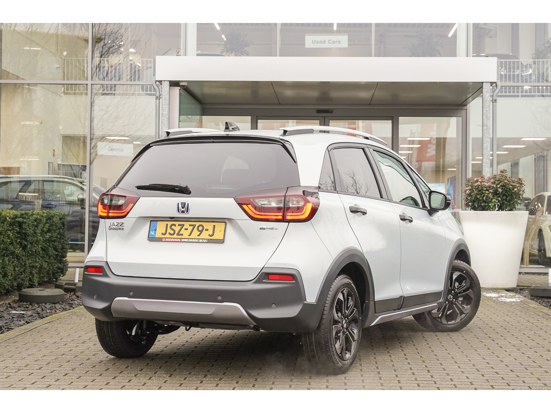Demonstratie model; Splinternieuwe Jazz 1.5i HYBRID CROSSTAR Advance!! Deze Jazz Crosstar Advance inclusief de nieuwe 122 PK motor, Honda Connect, Garmin Navigatie, Parkeersensoren voor en achter, Adaptieve cruise controle, Rijstrookassistentie, Bluetooth carkit, Climate control, Achteruitrijcamera met parkeerhulp, LED verlichting rondom, Half lederen interieur, Dakrailing, Privacy Glass af B-Style, Verkeersbordenherkenning, Stoelverwarming, Automatische ruitenwissers, Automatische verlichting met High Beam Support, Automatisch sturen en CarPlay voor Android of Apple. Met deze Jazz 5 deurs Crosstar kunt u direct wegrijden; Prijs €. 31.950,- VOLLEDIG RIJKLAAR inclusief metallic lak (Premium Sunlight Silver M.) Wij leveren onder vaste en uiterst scherpe prijscondities (prijs reeds onder verrekening van alle kortingen). Profiteer ook van Honda Insurance, waarbij u zorgeloos geniet van 10 jaar volledige (fabriek) garantie gecombineerd met gratis haal en brengservice (door heel Nederland) bij onderhoud en/of reparatie inclusief 10 jaar Honda Assistance. Het betreft hier een demonstratie model, informeer daarom naar de actuele kilometerstand.