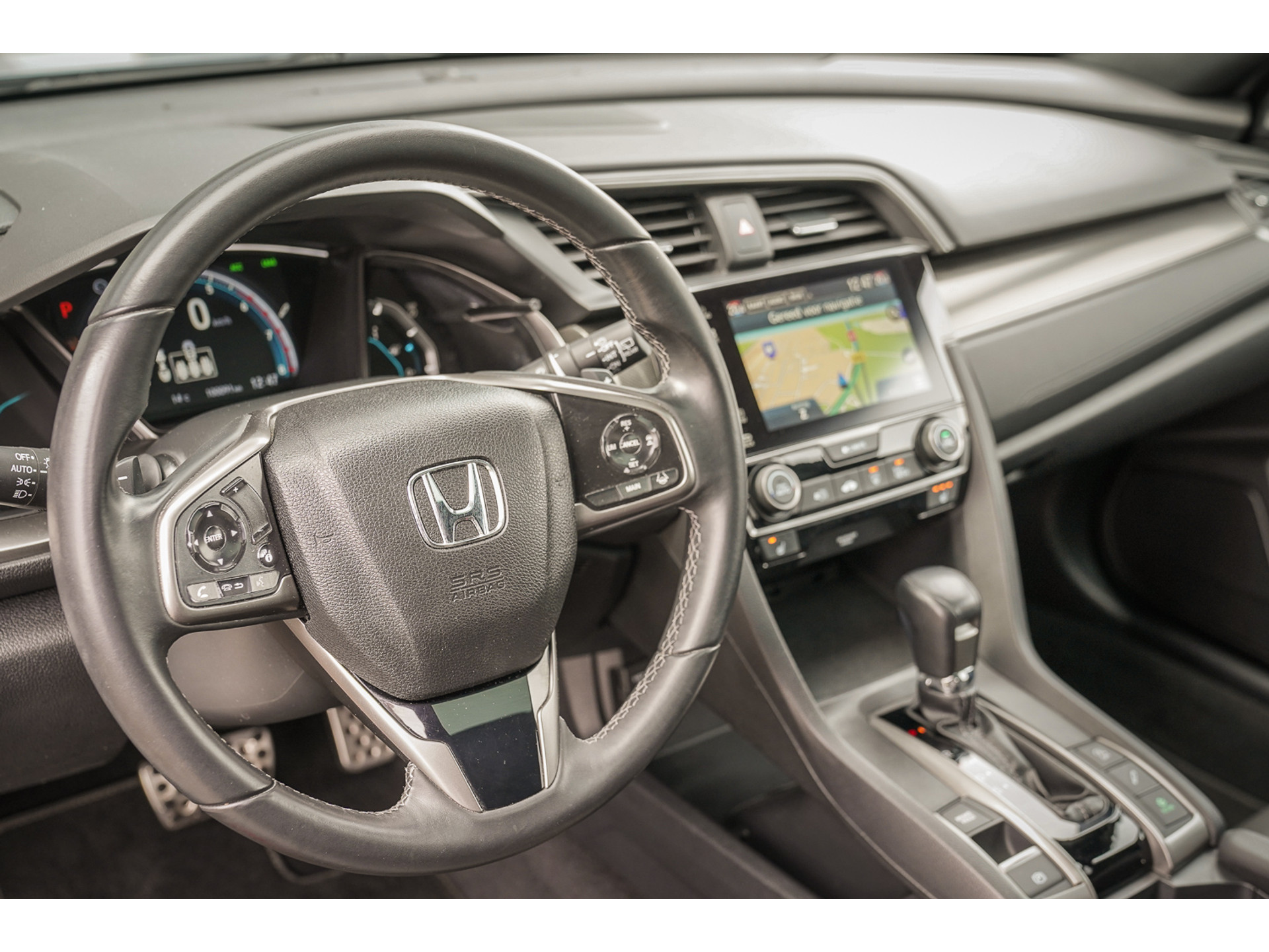 Fantastisch mooie Civic 5 drs 1.0i VTEC TURBO in de meest luxe Exceutive uitvoering, inclusief 7 traps automaat. Deze super complete 5 deurs is uitgevoerd met LED verlichting rondom, LED mistlampen, Zwart Nappa lederen interieur, Privacy Glass af B-Style, Honda Connect, Garmin Navigatie, Parkeersensoren voor en achter met monitoring, Instelbare adaptieve veerinstelling, Carplay voor Apple en/of Android, Stoelverwarming voor, Rijstrook-assistentie, Automatische stuurpilot, Blind Spot, Highbeam Support, Verkeersborden herkenning, Adaptieve Cruise Control. Stuurassistentie en een groot te openen glazen Panoramadak. 100% (Honda)dealer onderhouden en met een volledig schadevrije historie. Deze prachtige Civic is in fantastisch mooie staat en het zwarte (Nappa) lederen interieur ziet er voortreffelijk goed uit, natuurlijk rook en huisdiergeur vrij en is in zijn spectaculaire Sonic Gray kleur een lust voor het oog. Deze prachtige Civic Turbo wordt geleverd tegen een vaste en scherpe prijsconditie en met 12 maanden volledige BOVAG garantie: Uniek; informeer ook naar de mogelijkheden van Honda&Selectie, waarbij u zorgeloos geniet van 48 maanden volledige Honda garantie, gratis haal en brengservice bij onderhoud en/of reparatie en 48 maanden gratis Honda Assistance.
